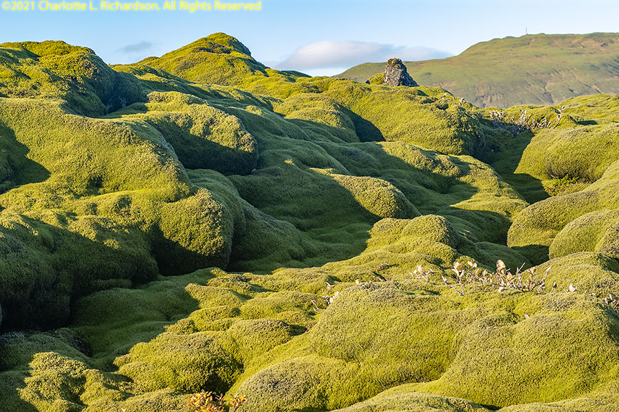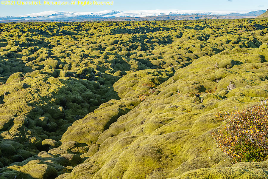 The lava field along Myvatn's northern lakeshore originated from Leirhnjukur Volcano in 1729. It is overgrown with lava moss.