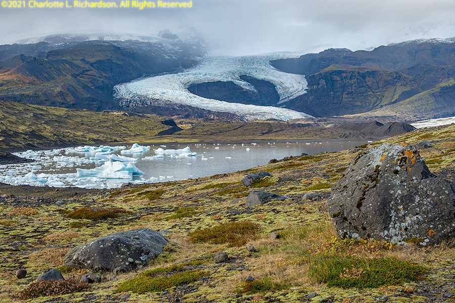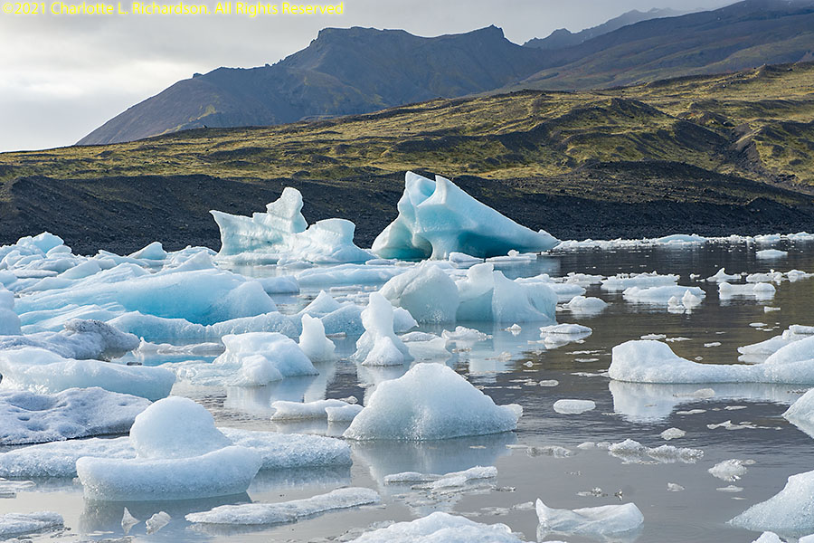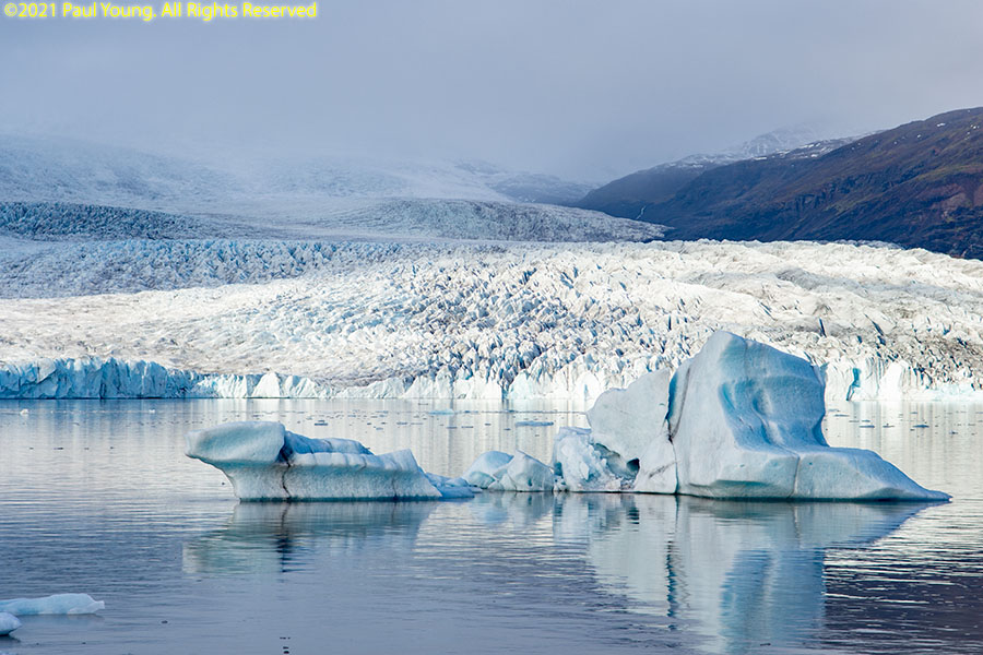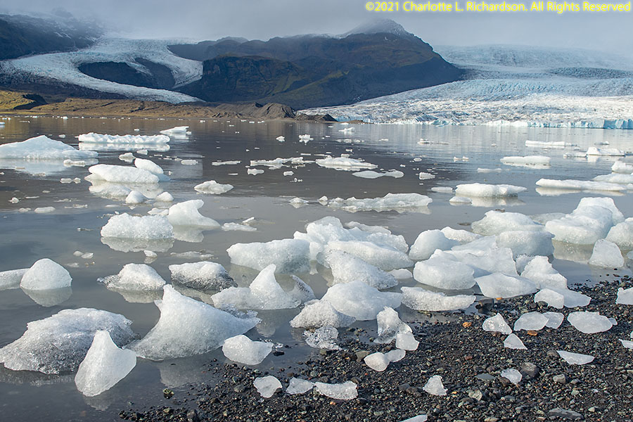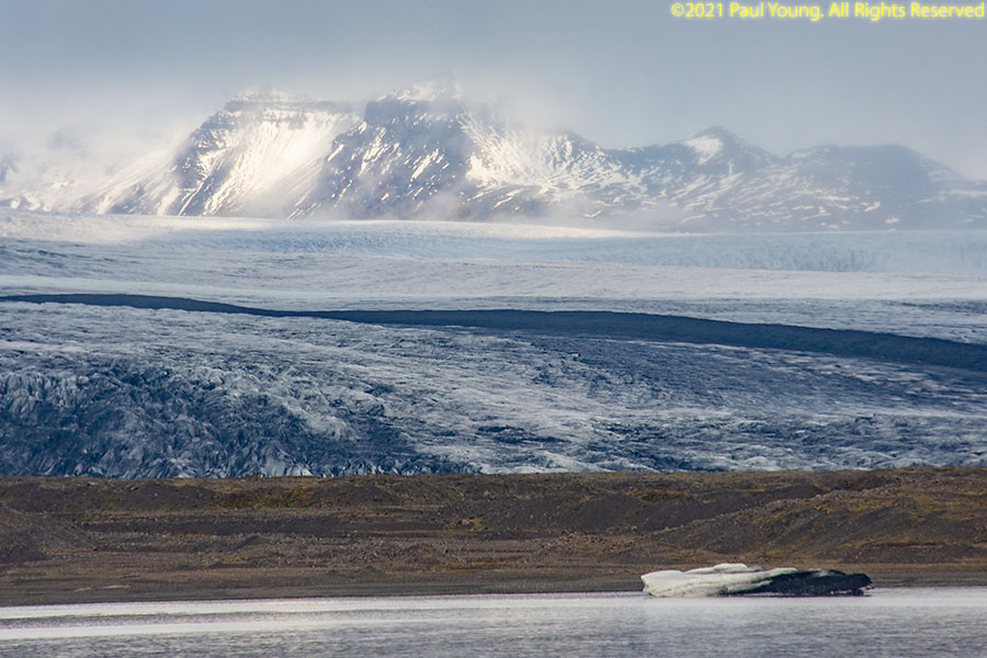 The Fjalljokull Glacier calves into the easily-accessible Fjallsarlon glacier lagoon.