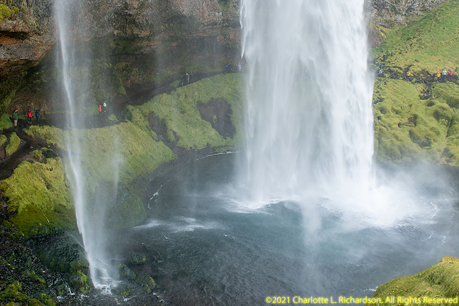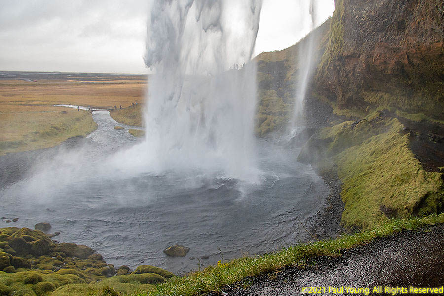 This 60m high waterfall of the Seljalands River originates on the lower escarpments of Eyjafjallajokull Volcano glacier. It is possible to walk behind the waterfall.