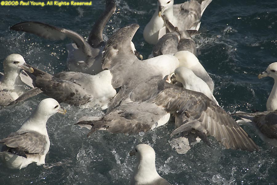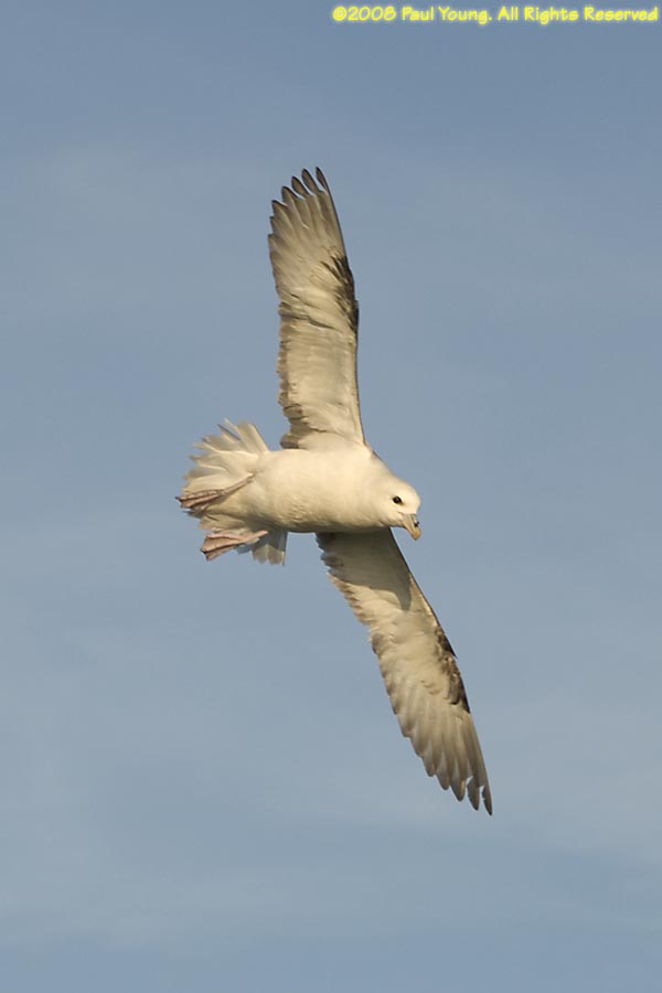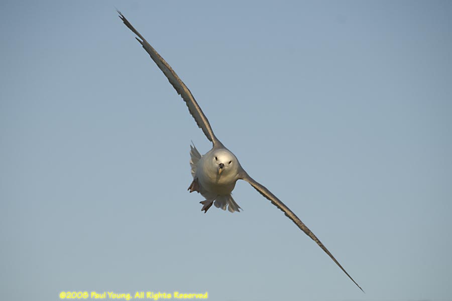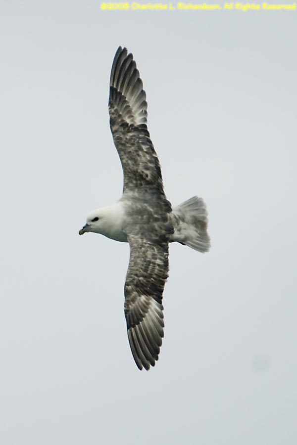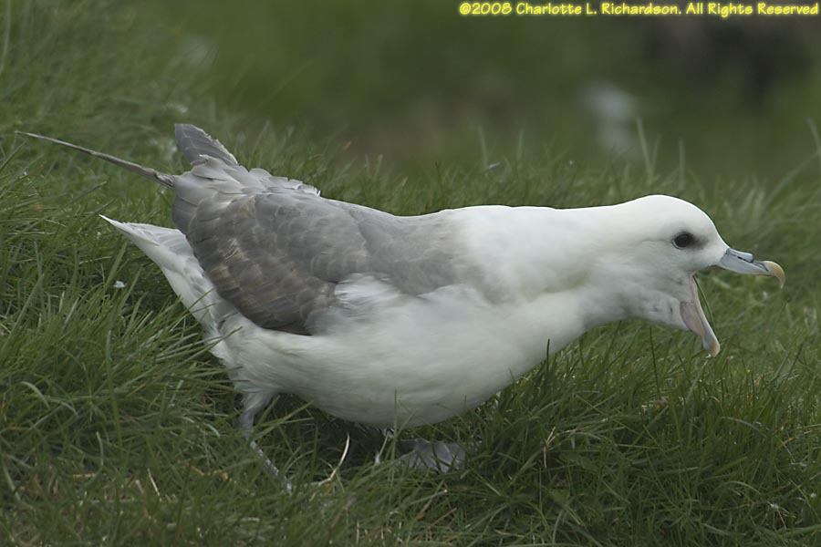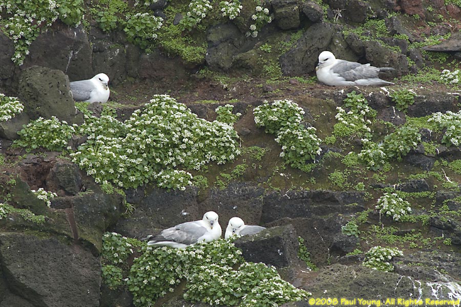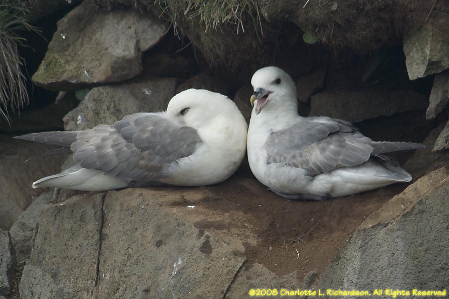 Fulmars (Fulmarus glacialis) are large gull-like tubenose seabirds with thick necks and long narrow wings.