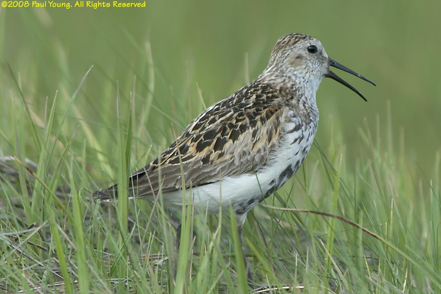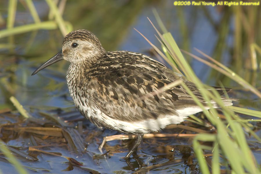 Dunlins (Calidris alpina) are a small wading bird found in marshy areas in the summer.