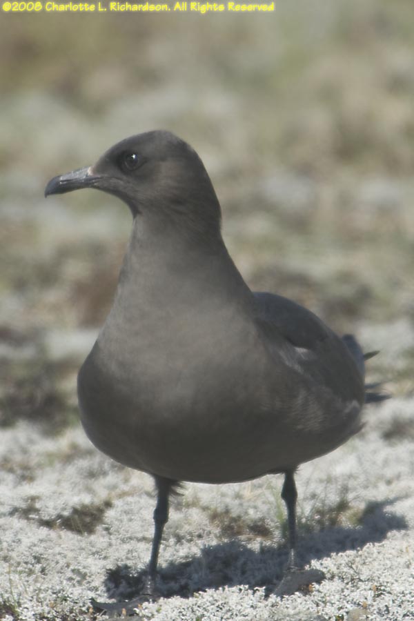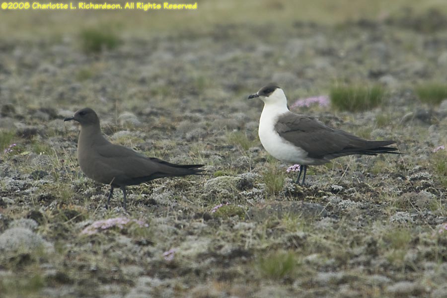 Arctic Skuas (Stercorarius parasiticus) are smaller and more slender with long central tail feathers and long wings. There are light and dark morph arctic skuas.