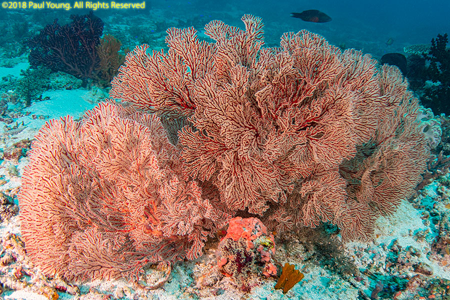 Sea fans are sessile colonial cnidarians. Individual polyps form colonies that are erect, flattened, and branching, resembling a fan.