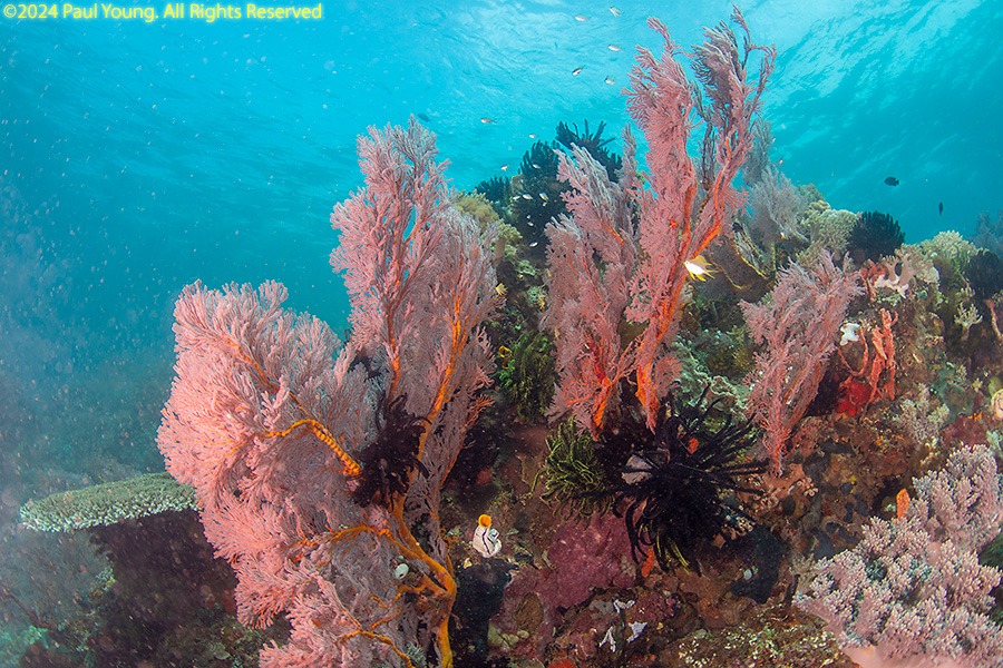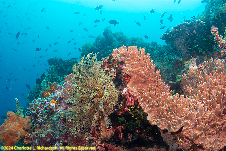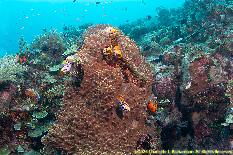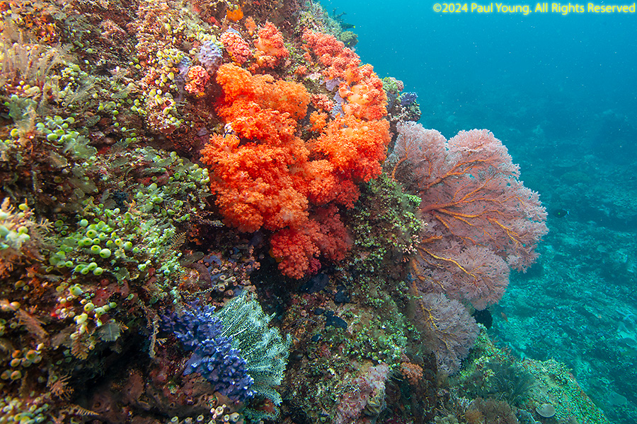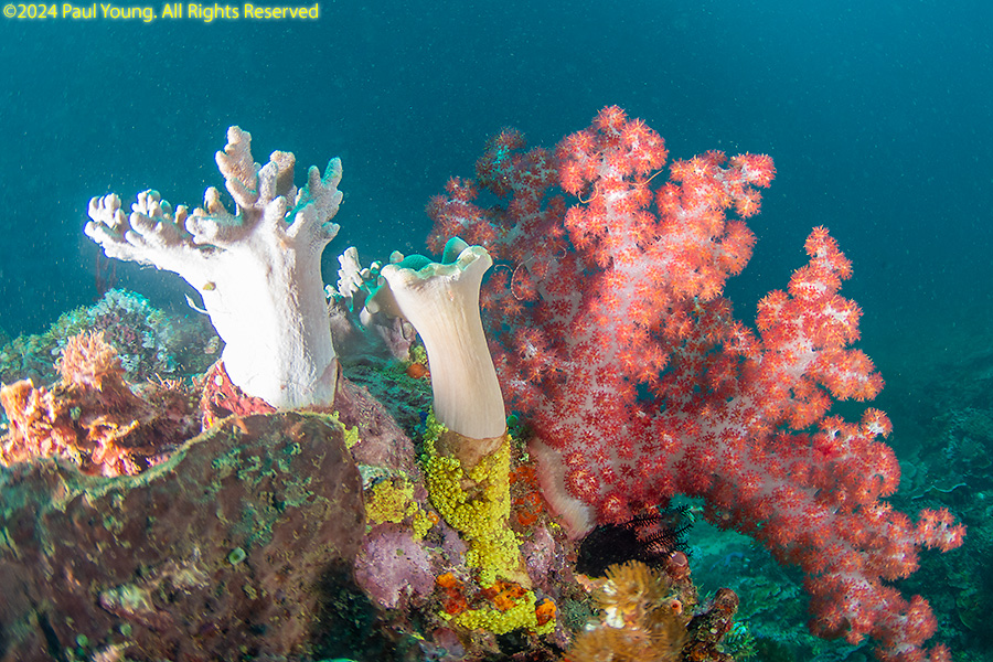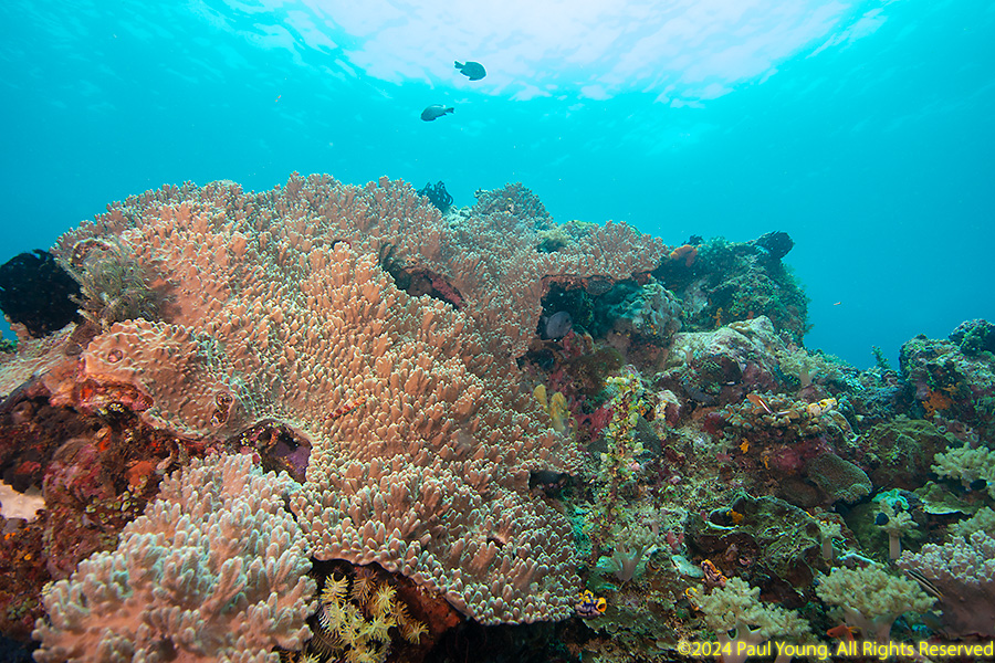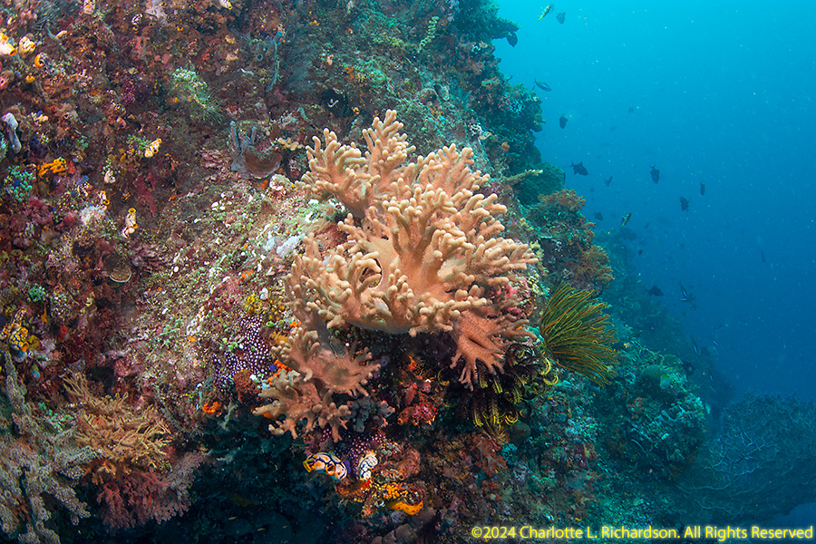 Bangka Island is located off the northeastern tip of Sulawesi near the city of Bitung. Sandy beaches and coral reefs surround the southwestern and southern parts of the island. The northern coastline is rockier and has more seagrass than coral. We stayed at Coral Eye. This area is known for soft corals.