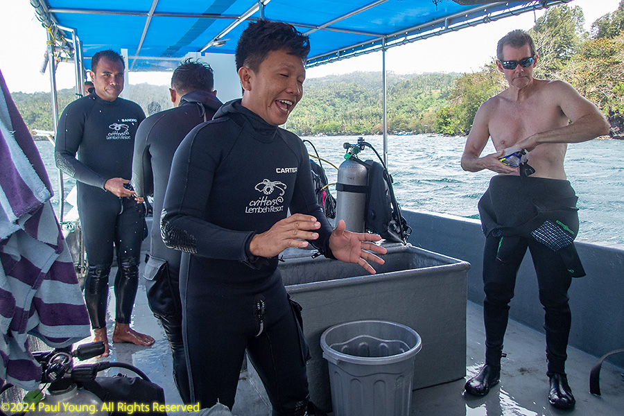 Lembeh is an island off the north coast of Sulawesi near the city of Bitung. The25 km long, 2 km wide island is separated from the mainland of Sulawesi by the Lembeh Strait. The strait has a very high density of rare and unusual marine life, in particular frogfish, rare species of octopus, seahorses, and nudibranchs. We stayed at Lembeh Resort. We were part of a macro underwater photography workshop sponsored by Backscatter.