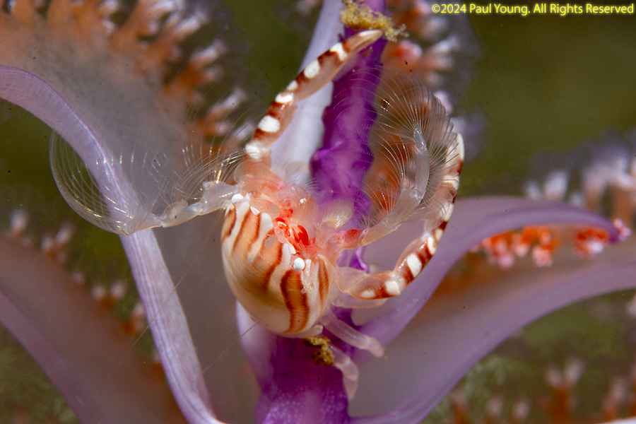 Peacock-tail aneomone shrimp, Periclimenes brevicarpalis