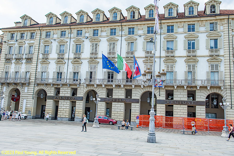 Piazza Castello is surrounded by the Royal Palace and Armory, the Teatro Regio, the headquarters of the Piedmont Region, and the Royal Church of San Lorenzo.