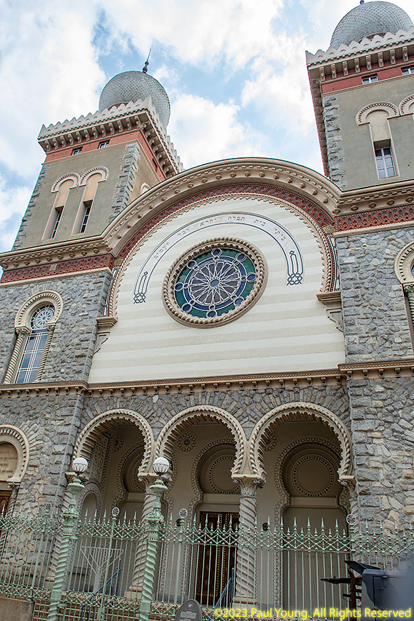 The Great Synagogue of Turin was designed in the Moorish style and opened in 1884. It wa severely damaged by bombing in 1942 and was rebuilt in 1949. It can seat 1400 people.