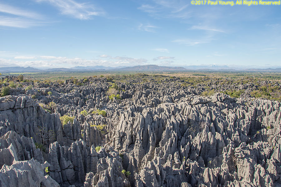 Ankarana Special Reserve is a small karst limestone plateau, about 5 km by 20 km, rising abruptly from the surrounding grassy plain in the region of Ambilobe. It is dominated by impressive tsingy formations. It is home to sixty species of reptiles and amphibians, 96 species of birds, 50 species of mollusks, and many snails.