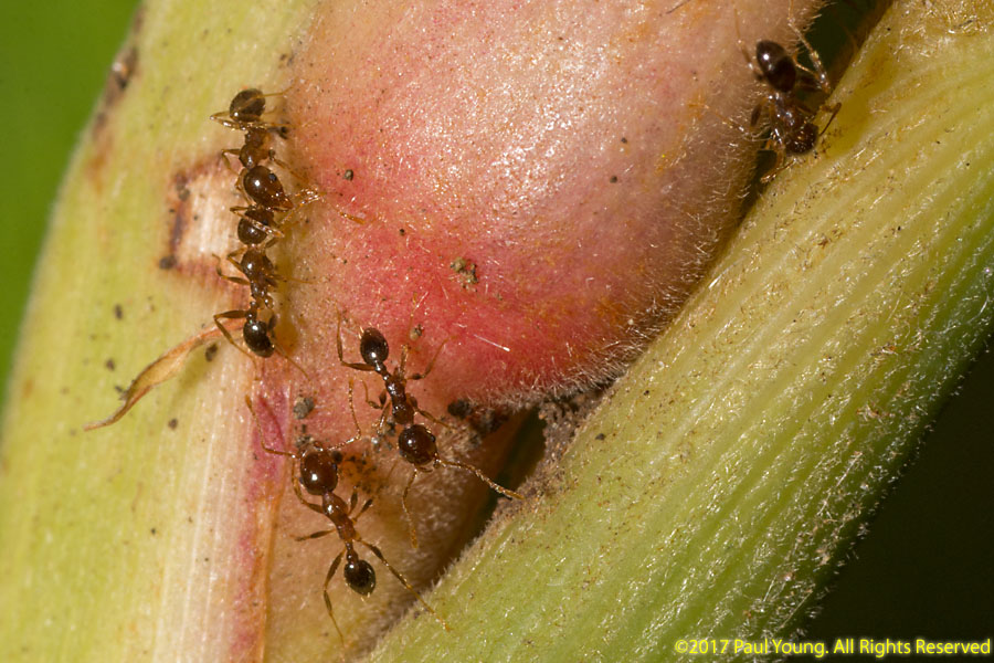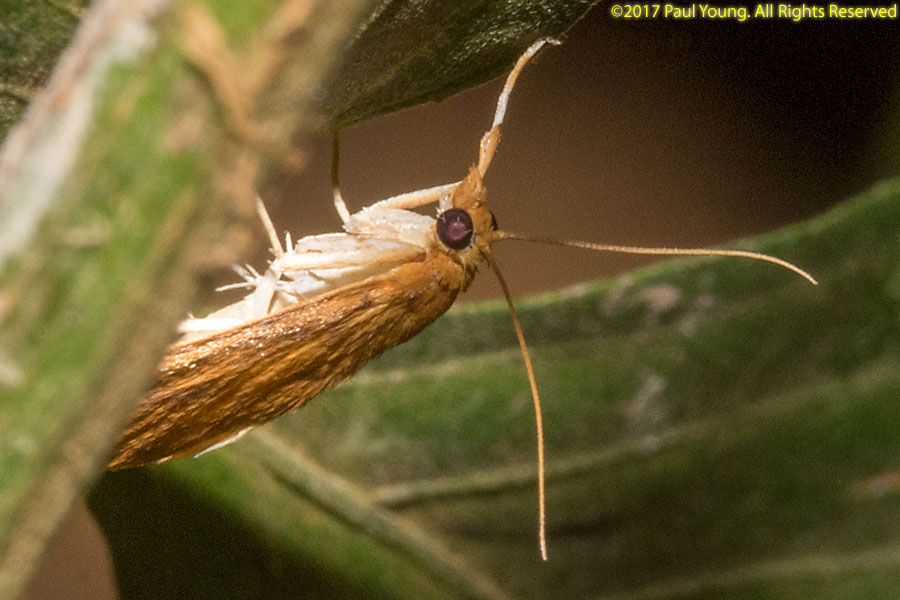 Flatid leaf bugs, Phromnia sp., adults and nymphs. The nymphs exude a white waxy substance that grows up from the animal like wispy feathers.