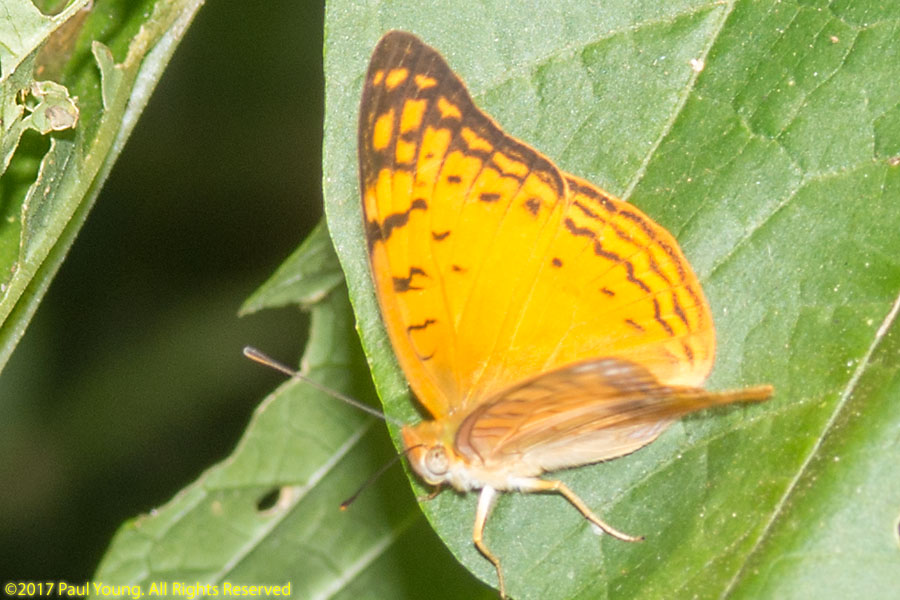 Common leopard (spotted rustic), Phalanta phalanta aethiopica, found in sub-Saharan Africa and southern Asia. They love sun and avoid shade.