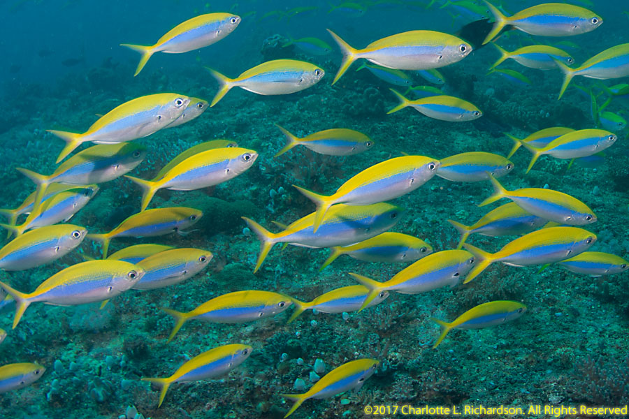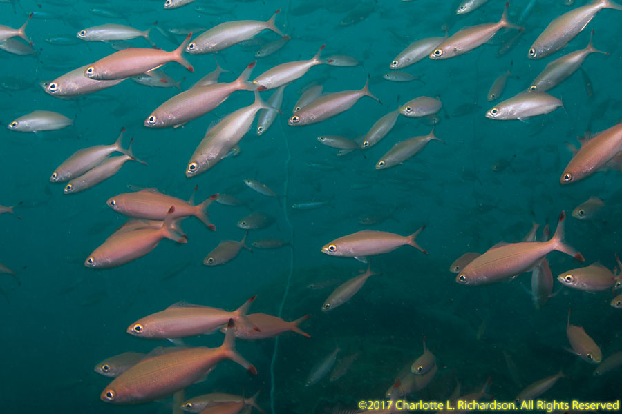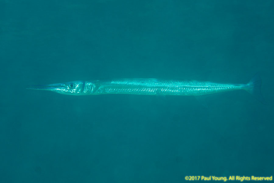 Blackfin barracuda, Sphyraena qenie, are the most common barracuda in the Red Sea and the Indian Ocean, forming large densely-packed schools.