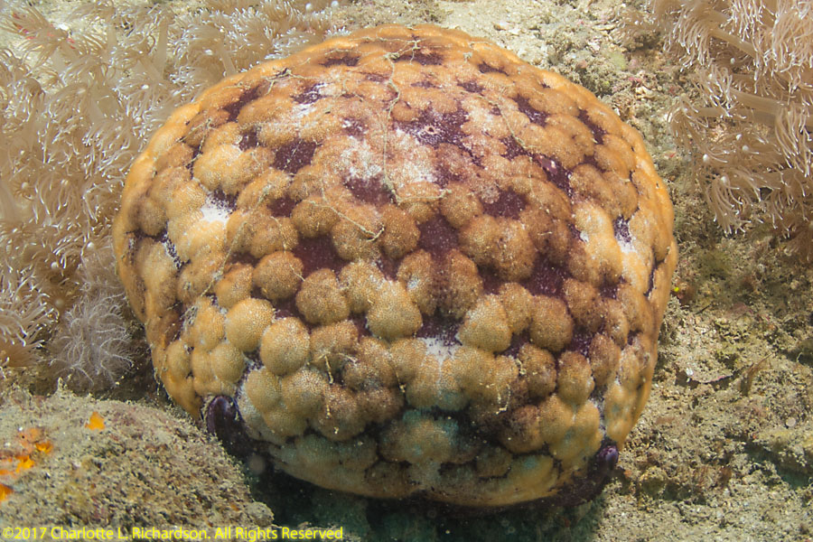 Sea urchins are related to sand dollars. They move slowly, feeding primarily on algae.