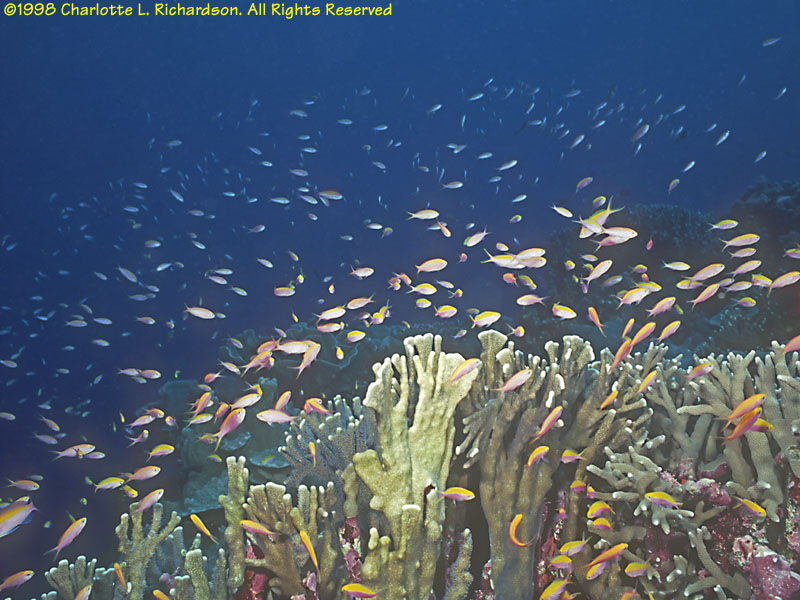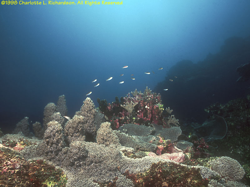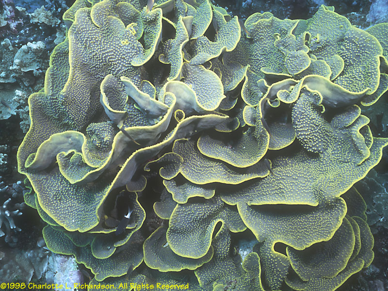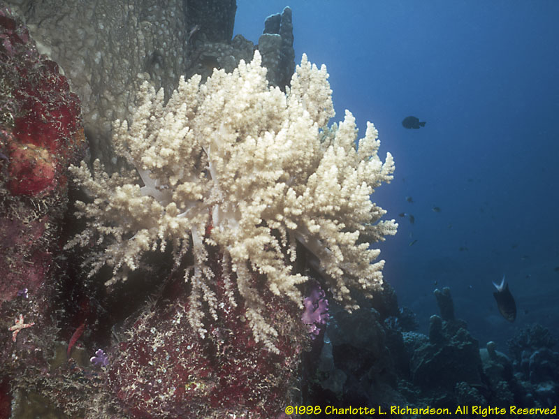 The hard coral heads house huge numbers of spiral gill ("Christmas tree") worms, Spirobranchus giganteus.