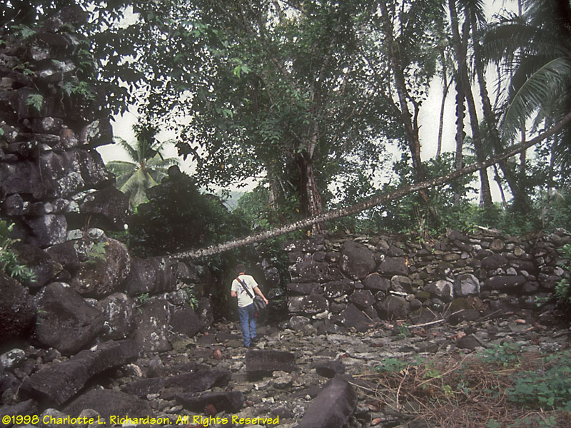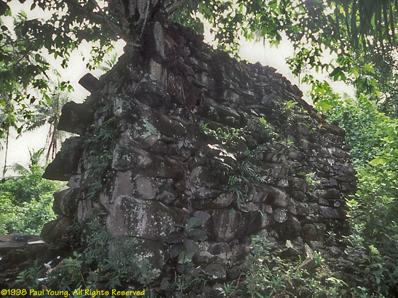 Between World War I and World War II thousands of Japanese came to Kosrae, forcing the population to abandon their villages and move inland. Part way up the slopes of Mount Finkol are the the ruins of Menke, even older than the Lelu ruins. Menke was sacred to the breadfruit goddess Sinlaku.