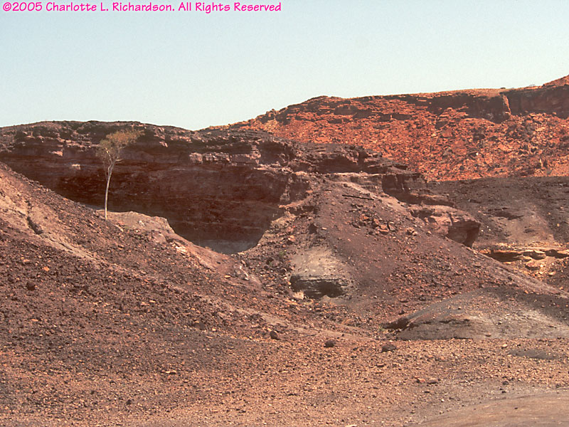 Dry riverbeds are the roads in this beautiful desert area. Basalt lava cooling underground formed the hexagonal columns of the "organpipes" formation (second photograph).