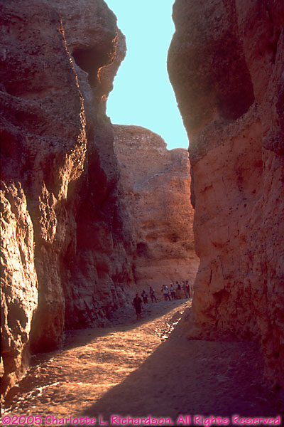 This slot canyon was formed by the Tsauchab River. The walls are loose sand and gravel conglomerate.