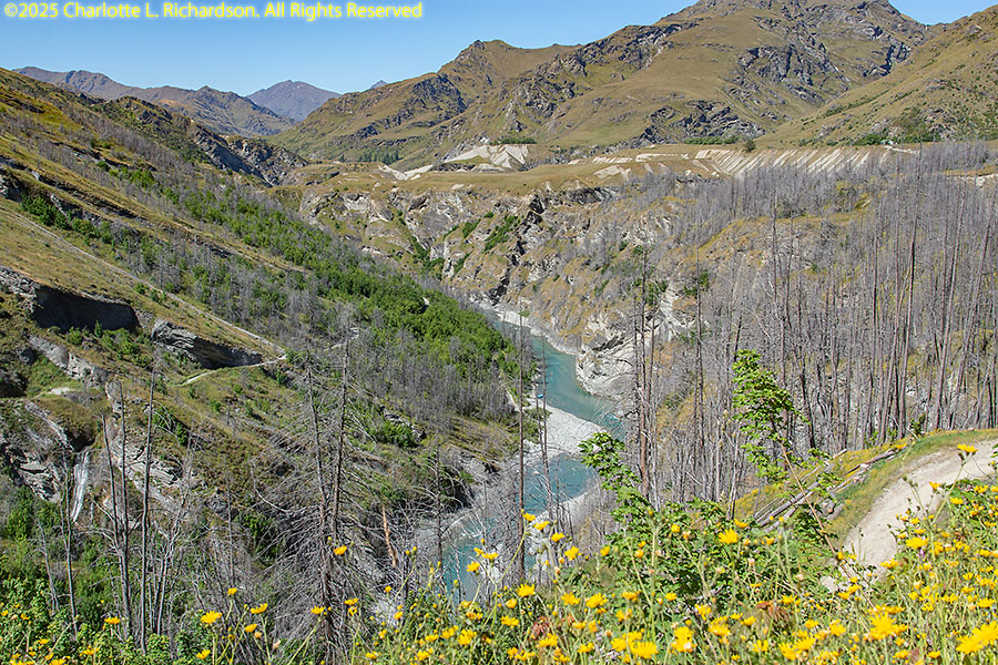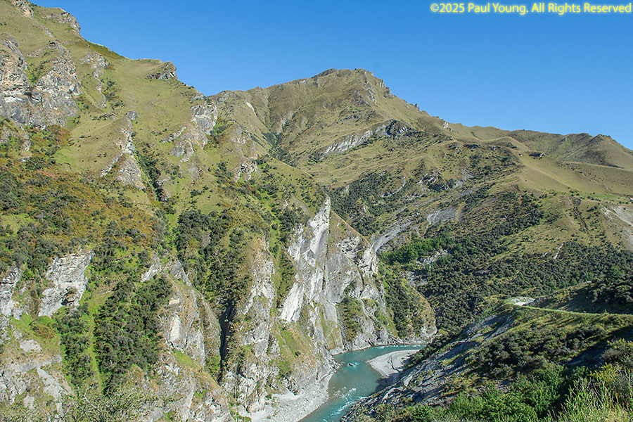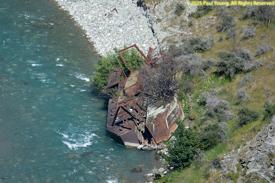 The gorge was carved by the Shotover River, one of New Zealand's richest gold-bearing rivers. Remnants of the mining operations are all around.