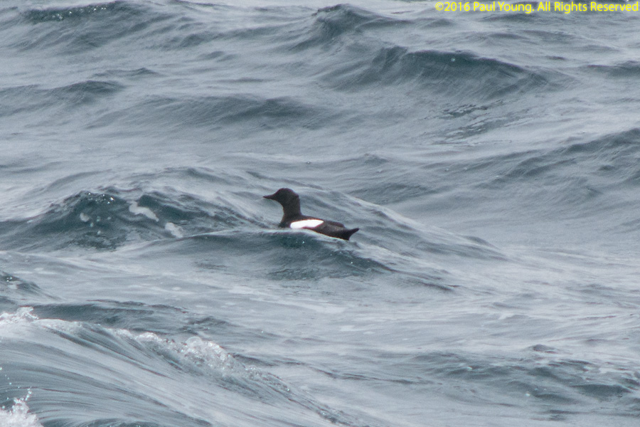 The black guillemot or tystie, Cepphus grylle, is a medium-sized alcid. Adults are black with a white wing patch. They breed on rocky shores, cliffs, and islands in the North Atlantic, laying their eggs in rocky sites near the water. There are five subspecies.