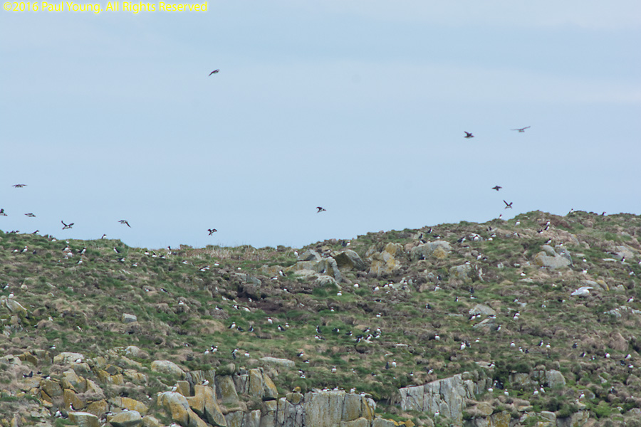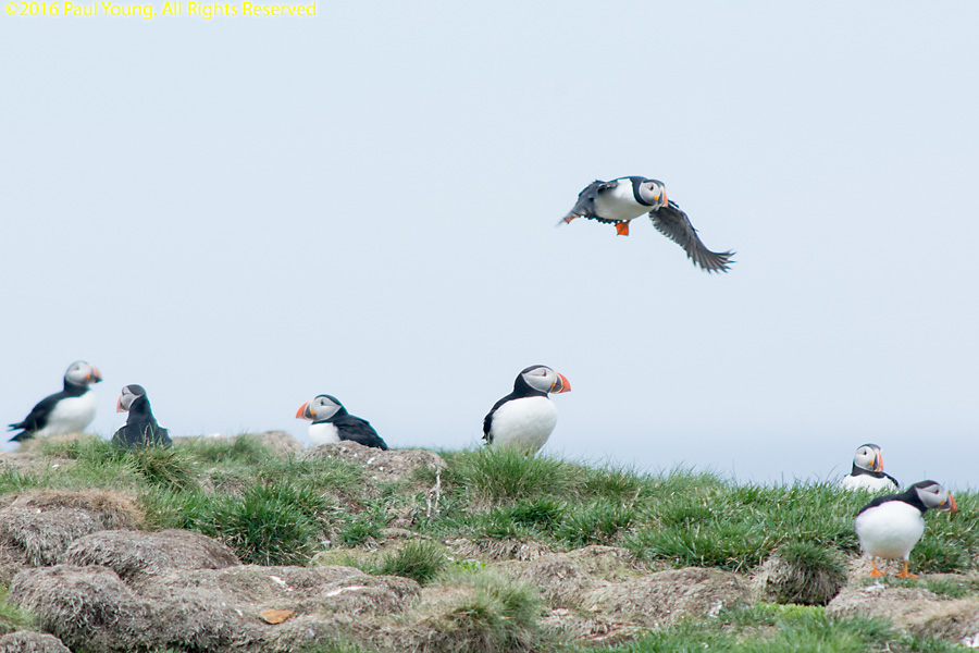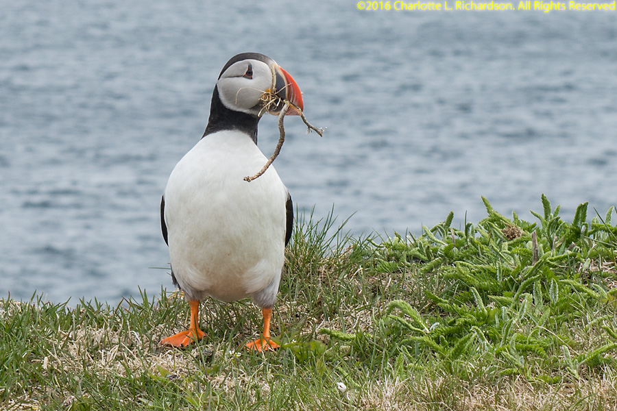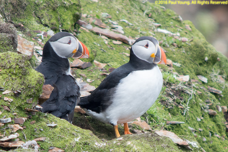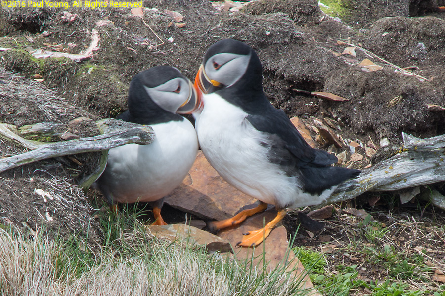 The Atlantic puffin or common puffin, Fratercula arctica, is the official bird of Newfoundland and Labrador. This small auk is the only puffin native to the Atlantic Ocean. Two related species are found in the northeastern Pacific Ocean. Puffins spend the autumn and winter on the open arctic ocean and return to coastal areas to breed in late spring. They nest in clifftop colonies, digging burrows where they lay their single eggs. Most colonies are on islands where there are no terrestrial predators. There are three subspecies. Billing is a puffin courtship and bonding behavior and continues throughout the breeding season (see video clip, below).