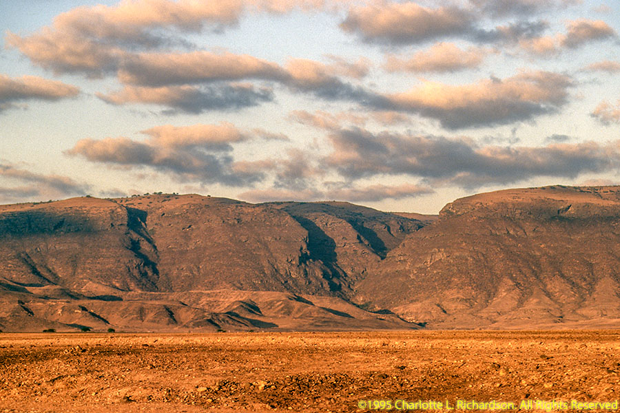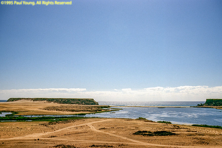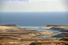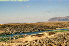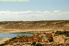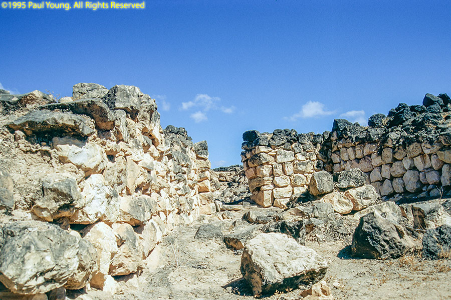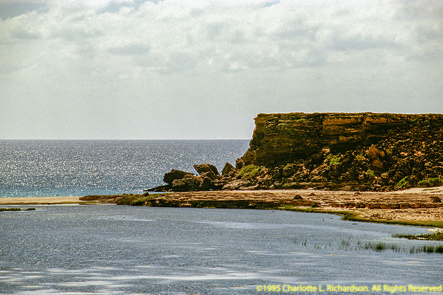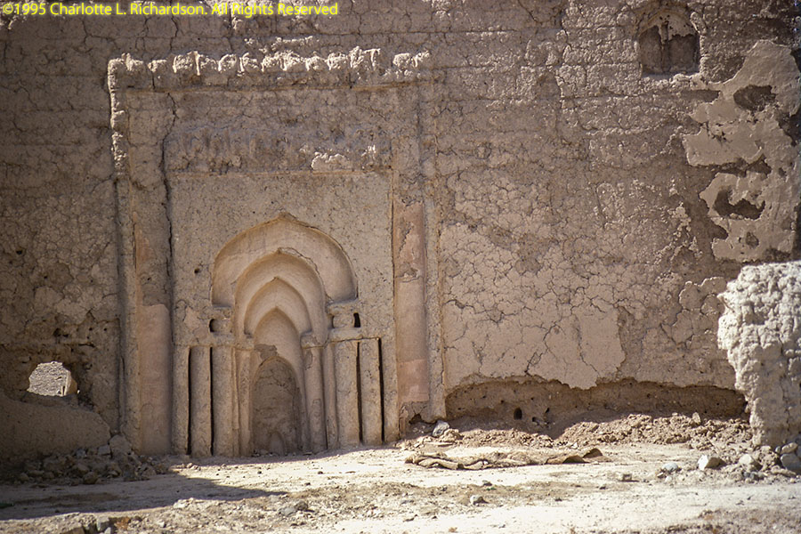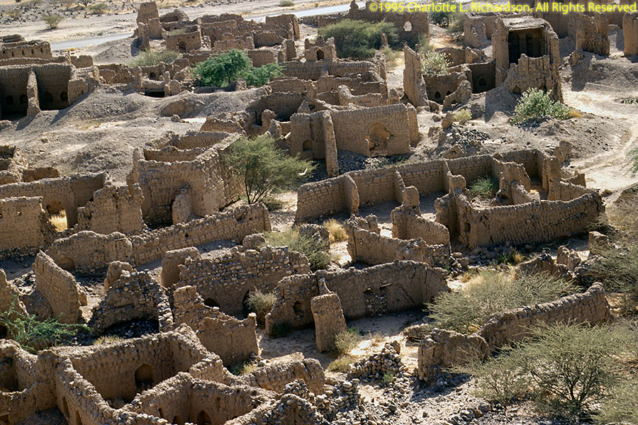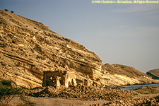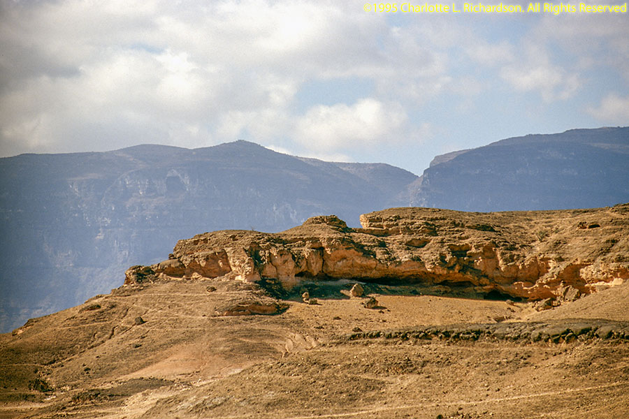 We drove to Khor Rauri to locate the ruins of Samharan. The Tel of Samharan lies only a few kilometers off of the paved road at the head of a beautiful wadi with hills on either side. In anceint times the wadi was deeper and formed a natural harbor, now blocked off by a sand bar. The Tel was surrounded by a protective fence and had at that time (1995) not yet been excavated and lay just as it was discovered only a few years earlier after an extensive search.