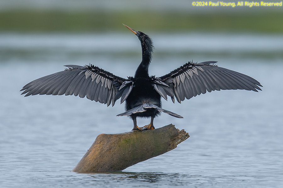 Anhingas are closely related to cormorants. They swim with only the head and neck visible above the water.