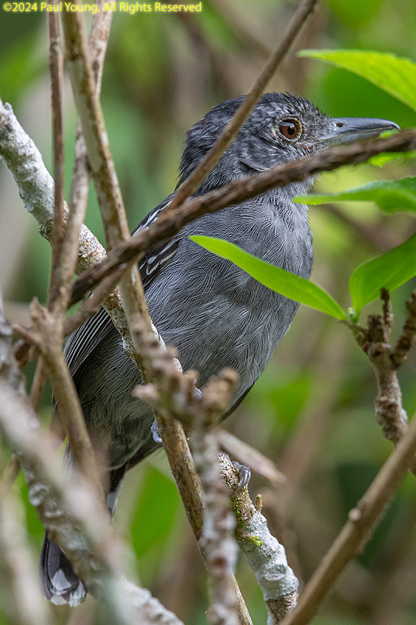 Antshrikes and Antwrens do not actually eat ants, but snap up any prey disturbed by army ants.