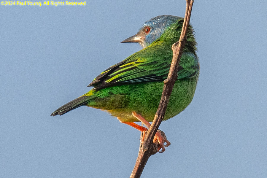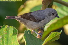 Tanagers and dacnis are a large family unique to the New World. Typical tanagers are 5-6" long, have stout bills, and most eat fruit.