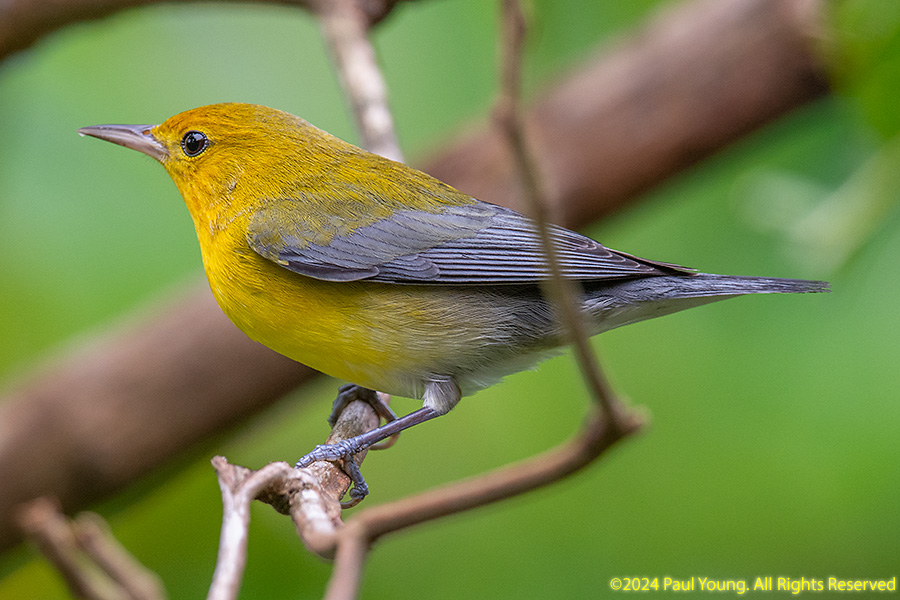 Prothonotary warbler (male left, female right), Protonotaria citrea