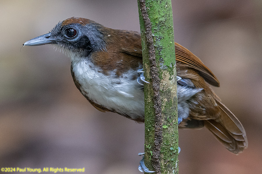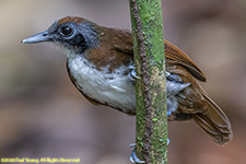 Antbirds and Antshrikes are small birds with rounded wings and strong legs.