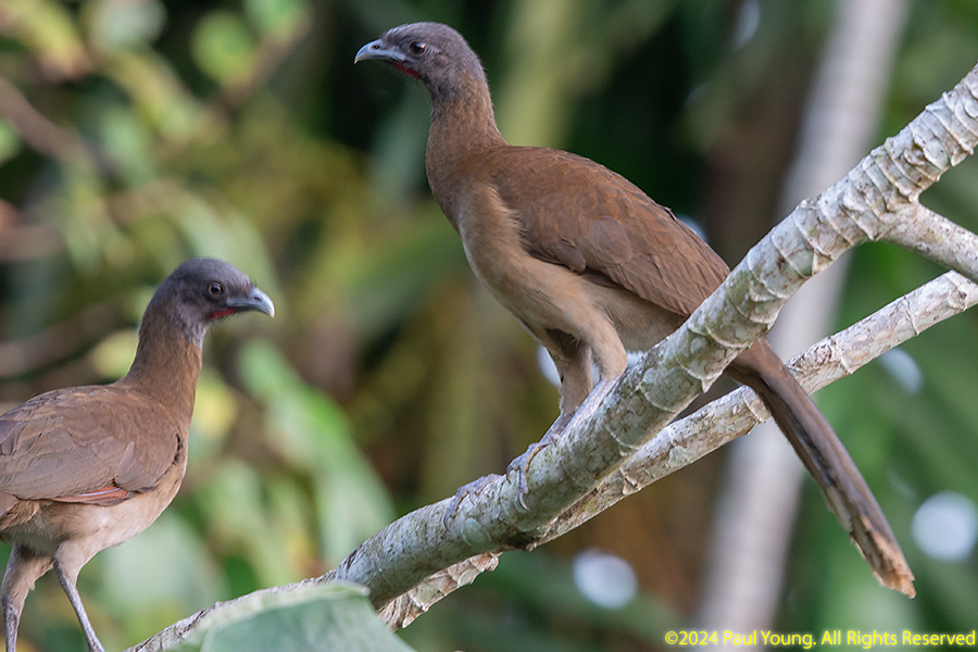 Chachalacas are noisy social ground-feeding birds found in wooded habitats.
