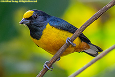 Fulvous-vented euphonia (female left, male right), Euphonia fulvicrissa