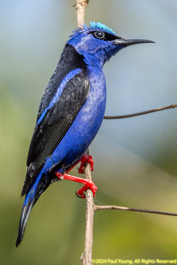 Red-legged honeycreeper (female left, male right), Cyanerpes cyaneus