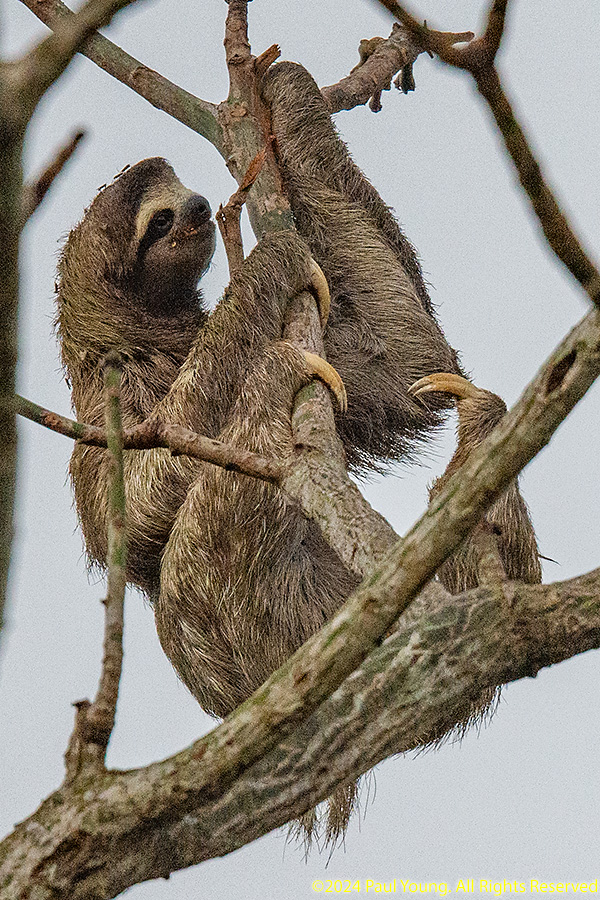 Sloths, Neotropical animals related to anteeaters, are noted for their slowness of movement, spending most of their lives hanging upside-down from rainforest trees. All sloths have three toes on their rear limbs.