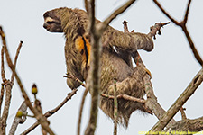 Brown-throated three-toed sloth, Bradypus variegatus. The striped color pattern on its back shows this one is a male.