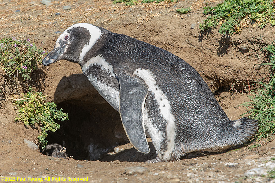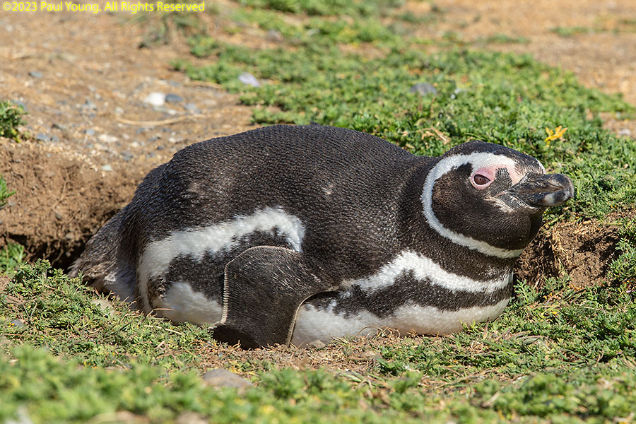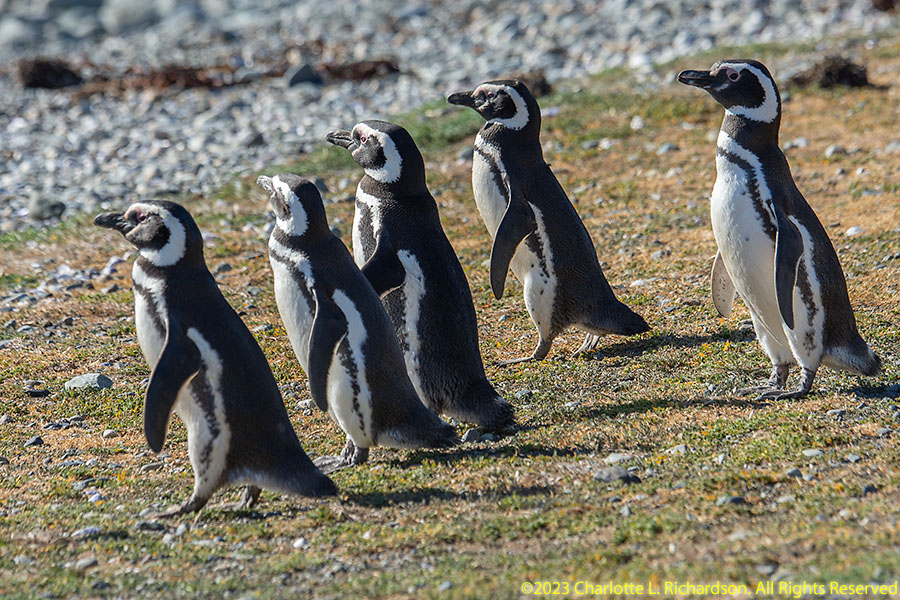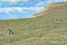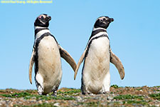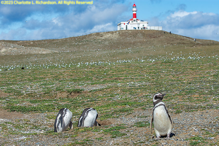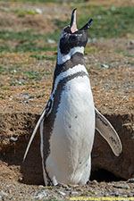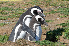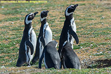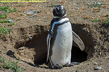 Monumento Natural Los Pinguinos on 97-hectare Isla Magdalena in the Straits of Magellan 37 km northeast of Punta Areans is home to a colony of more than 150,000 Megallanic penguins, Sphenicus magellanicus. The birds are present in the breeding colony from early October to April.