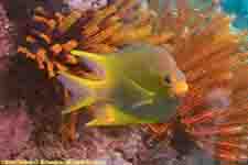 Honey-head damselfish (juvenile left, adult rught), Dischistodus prosopotaenia
