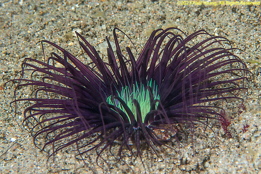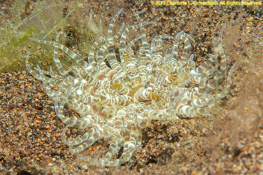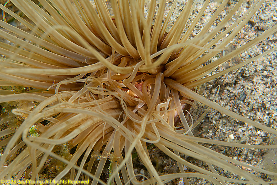 Cerianthids (tube anemones): There are three genera (Cerianthus, Pachycerianthus, and Arachnanthus) with several species each. Positive identification, even to the genus level, is impossible without examination of internal anatomy.