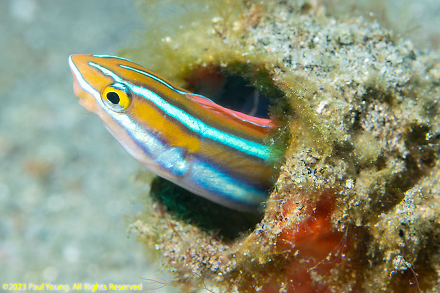 Bluestriped fangblenny, Plagiotremus rhinorhynchos