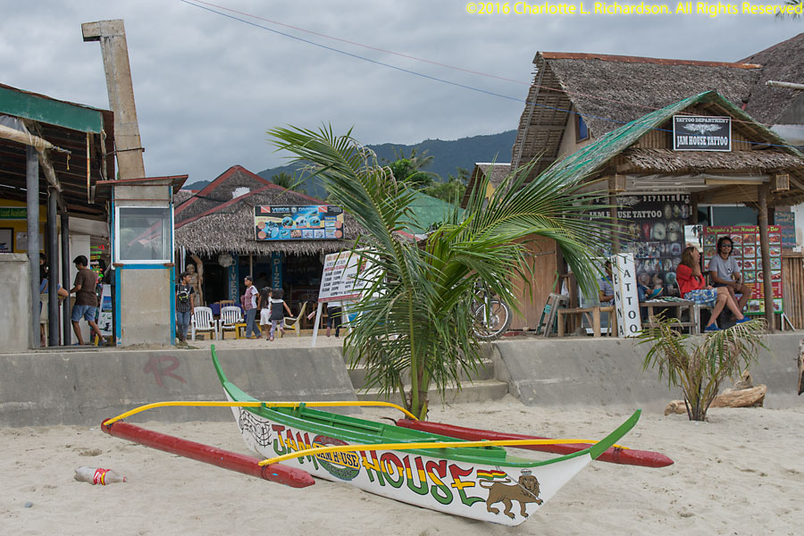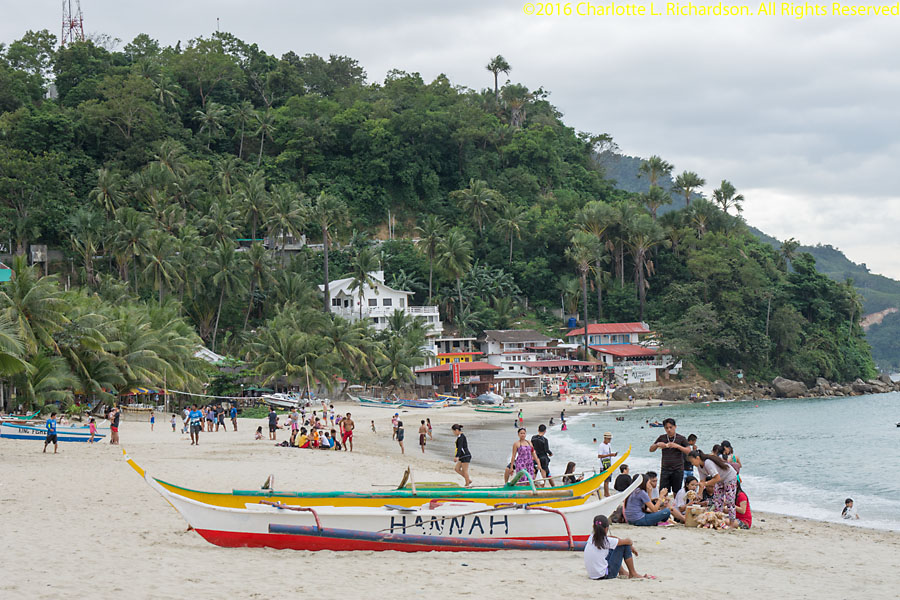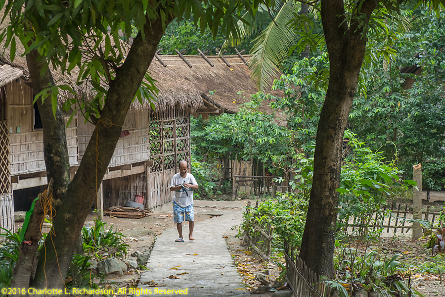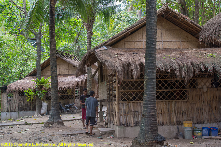 Mangyan village: The Mangyan are the indigenous people of Mindoro Island, arriving about 800 years ago. They are a proto-Malay people and make up about 10% of the population of Mindoro. There are eight tribal groups, each with their own language and customs. The Iraya-Mangyan people here in Talipanan were driven out of the hills several decades ago by fighting between the government and the communist New People's Army rebels. They settled along the beach just north of Talipanan Beach. The wealthy family who owned that land built a sustainable-livelihood program for the indigenous Mangyan and helped revive the basket-weaving craft.