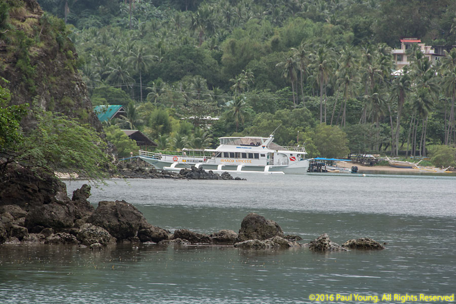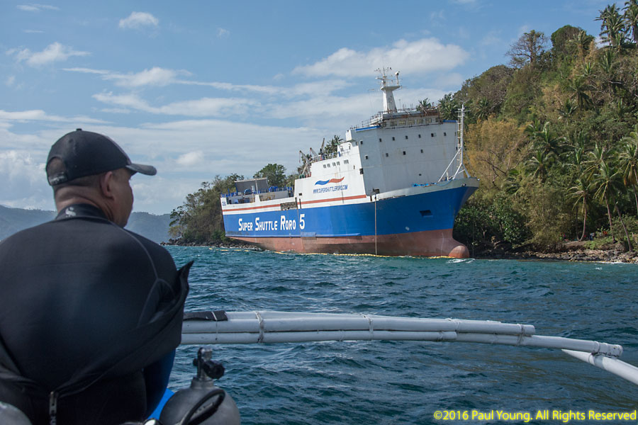 On the northern side of the Verde Passage at Anilao, repairs were underway too. A large car ferry had run aground when the storm track veered off its predicted route and brought strong storm surge to the usually-protected refuge area.