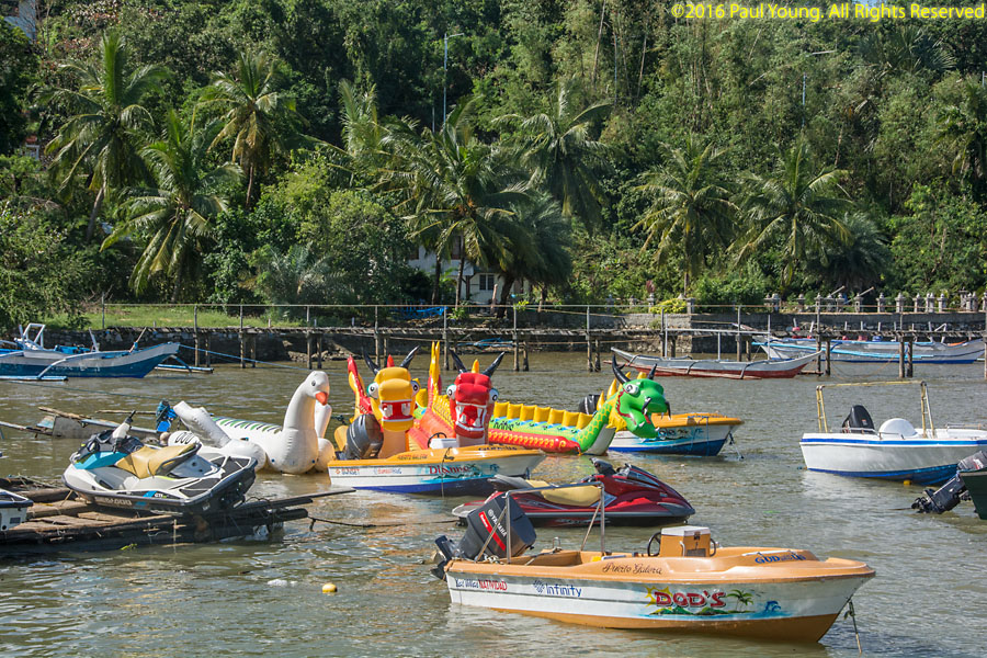 The Philippines Coast Guard stopped all boat traffic on Christmas Day in advance of the storm. All ships headed for the harbors-of-refuge. The resort's large dive boat, the "Big Beth" is in the harbor-of-refuge behind Sand Bar, with the smaller "Lady Merci" hidden behind it. The various beach toys from White Beach were also in the small boat harbor. Larger ships and container ships were in the outer harbor.