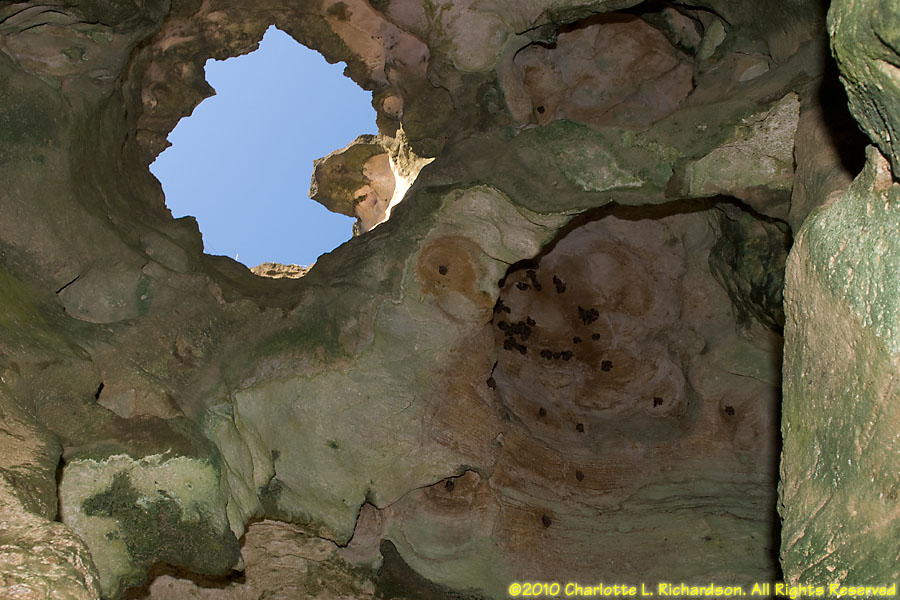 The Cueva del Indio is in the town of Arecibo. The petroglyphs were made by the Taino, about 500 years ago. Bats roost in the caves.