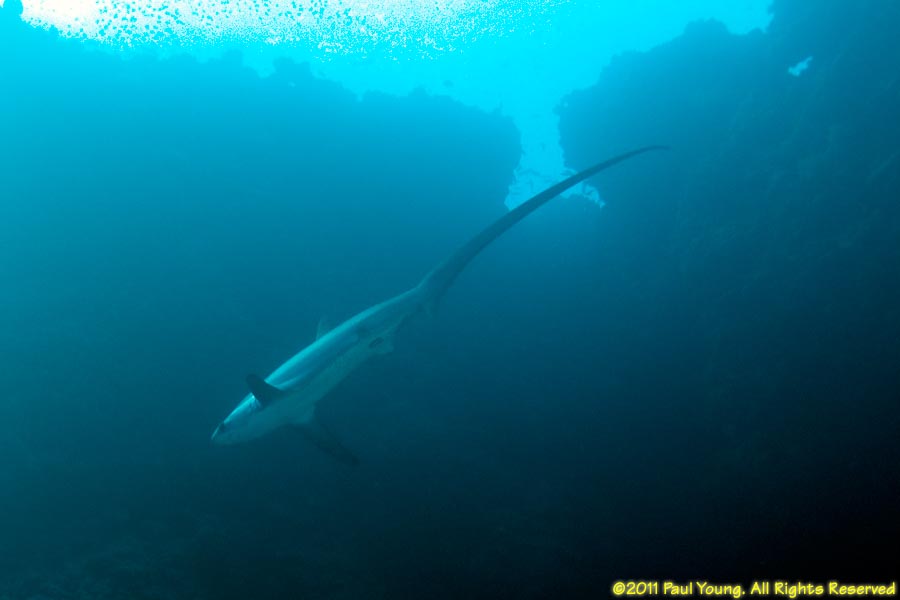 There is wall diving along the entire perimeter of the atoll, with a wide variety of pelagics, particularly thresher sharks. The east wall is mostly hard corals while the west wall has more soft corals.