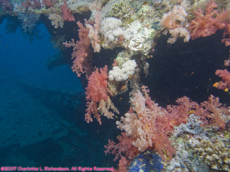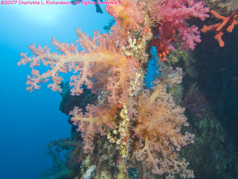 prop soft coral rudder soft coral on wreck diver over wreck fire coral anthias soft coral sea fan