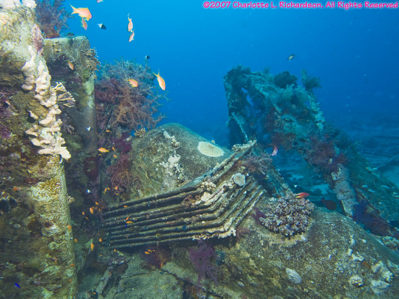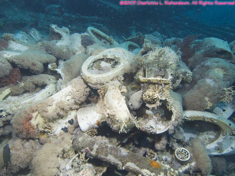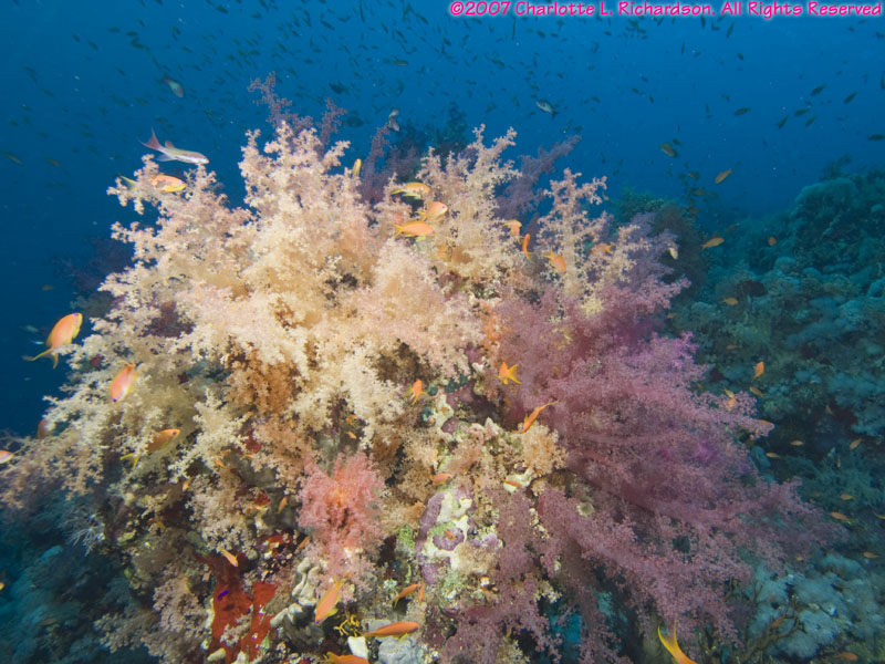 Shark and Jolande Reefs lie at the southern tip of Ras Mohammed. The north-south current takes you from Shark Reef to Jolande Reef. The Jolande was a Cypriot freighter that sank here on April 1, 1980. Most of the wreck washed off the reef into deep (530') water in a heavy storm in 1987, but her cargo of bathtubs and ceramic toilets remains on the reef from 50' to 80'.