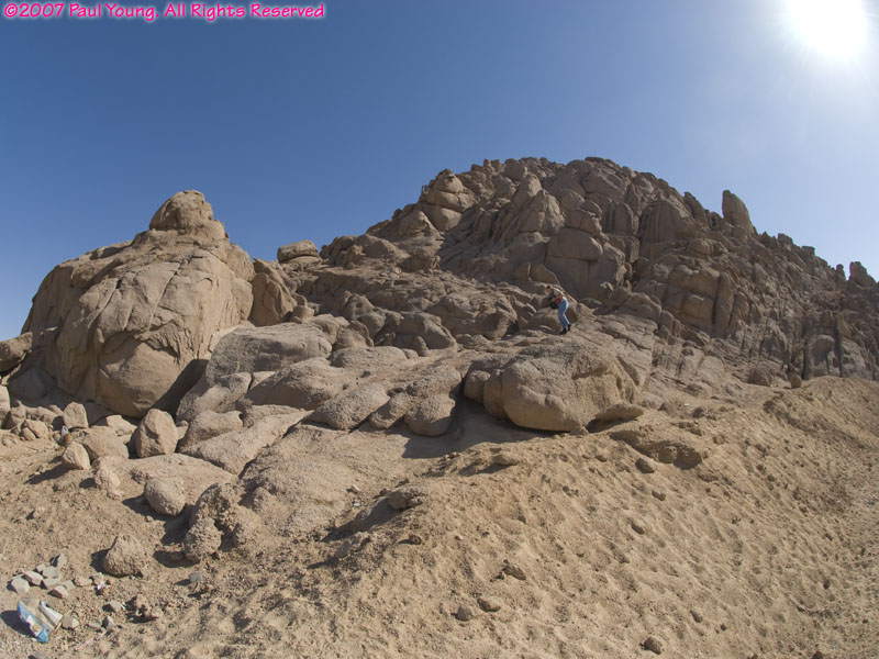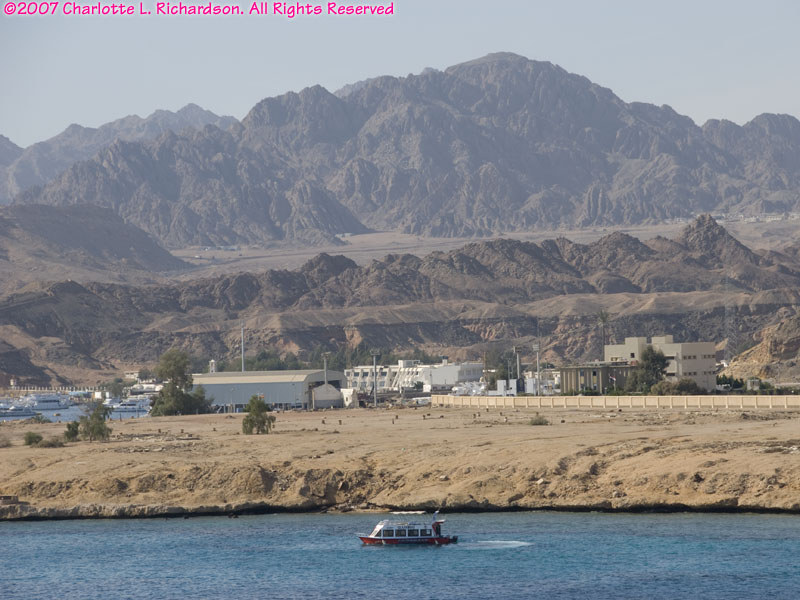 Near the southern tip of the Sinai Peninsula Sharm el Sheik and Na'ama Bay form a long strip of resort hotels along the coast. The modern international airport is about 8 km north of Na'ama Bay. There are direct flights from many cities in Europe; we flew in from London.