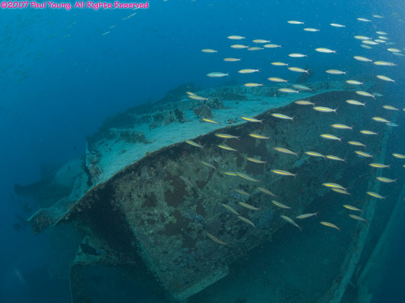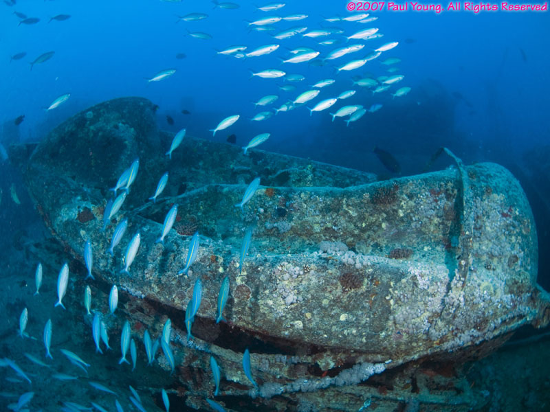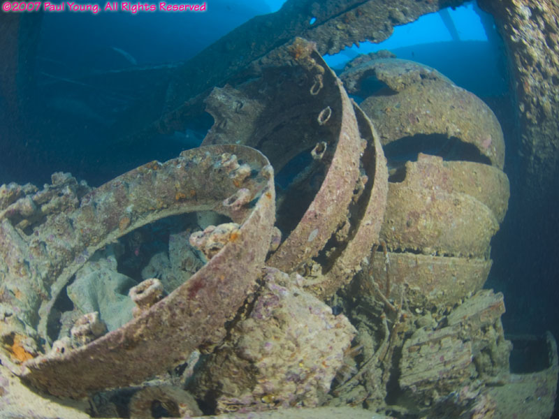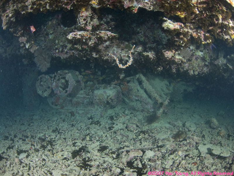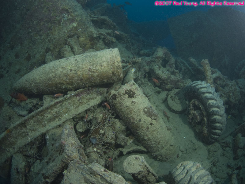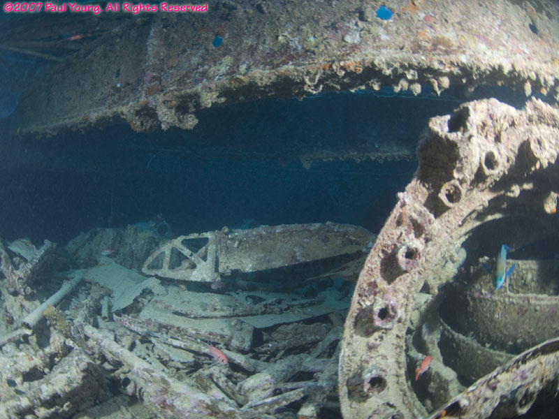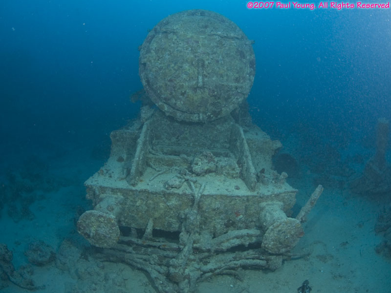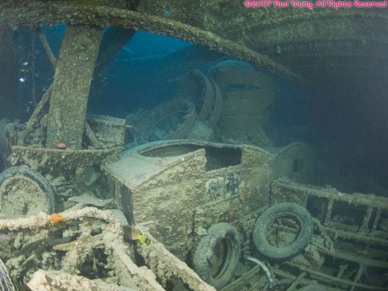 The most famous wreck in the Red Sea, the SS Thistlegorm, a 129m (420') World War II armed British supply ship, sunk October 6, 1941 at Sha'ab Ali. It was bound from Glascow, Scotland, to Alexandria, Egypt, with supplies for British troops, including tanks, armorered vehicles, aircraft, trunks, rifles, grenades, and motorcycles. The wreck is deep (52' to 105') and there is usually a strong current present. It is one of the most heavily-dived shipwrecks in the world.