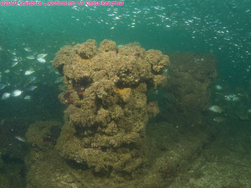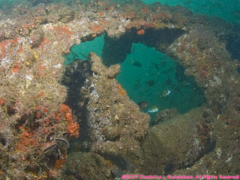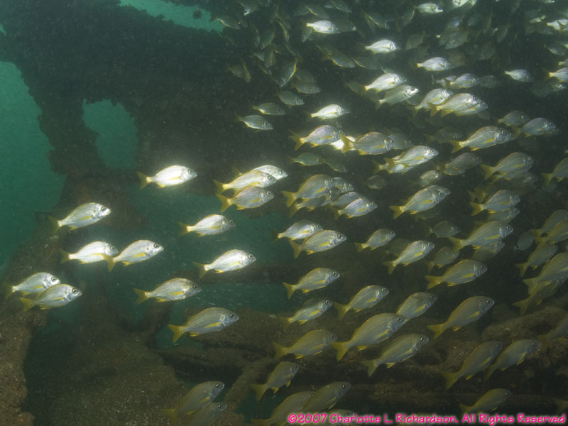 The most interesting site is the wreck of the Tacoma, a British World War II warship that was bombed in Dakar harbor and towed offshore to sink right on the ferry route between Dakar and Gorée, marked these days by a navigation buoy. This wreck had the largest fish population of any wreck we have photographed on anywhere in the Atlantic!
