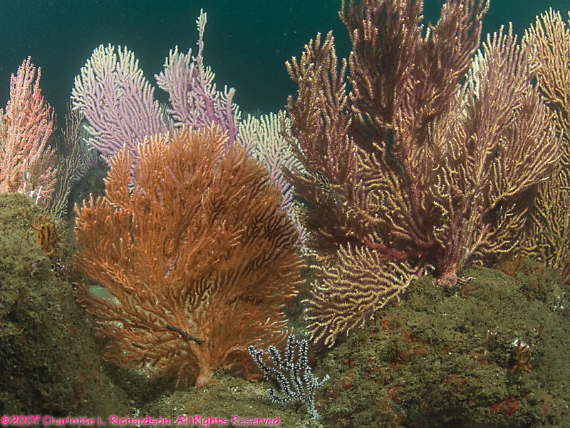 Deeper sites further south closer to La Somone featured colorful gorgonium fans, no two of which were the same color.